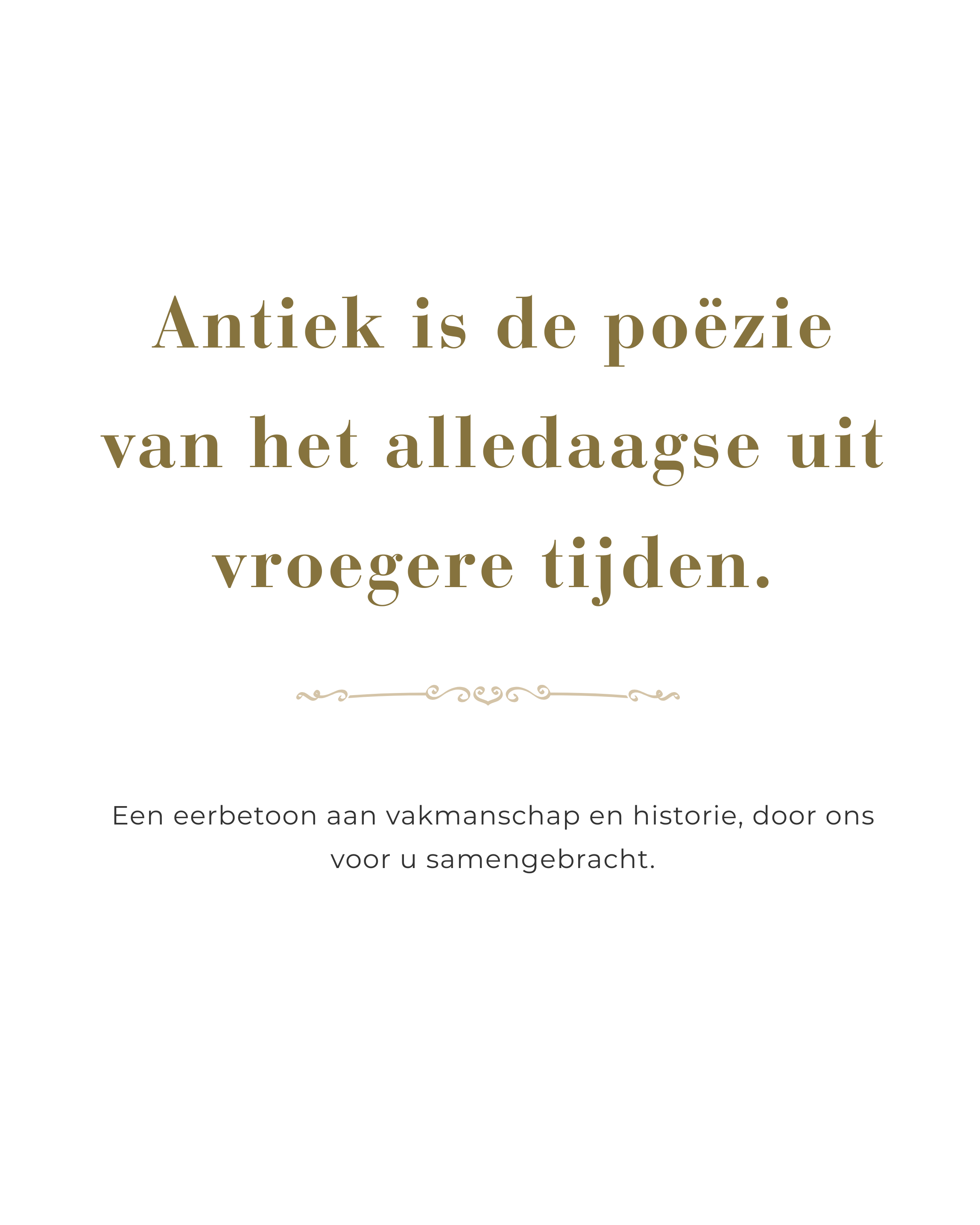 Laat u verrassen door ons exclusieve aanbod en voeg het rijke karakter van vervlogen tijden samen met uw hedendaagse verzameling, interieur of collectie.
